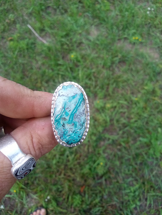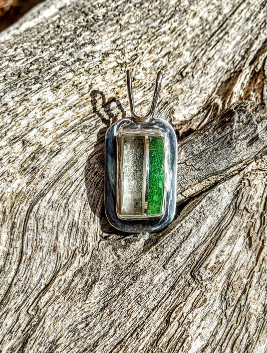 Beautiful leaf inspired Michigan Greenstone in fine silver