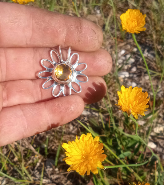 3.21 ctw Handcrafted fine silver Citrine flower pendant
