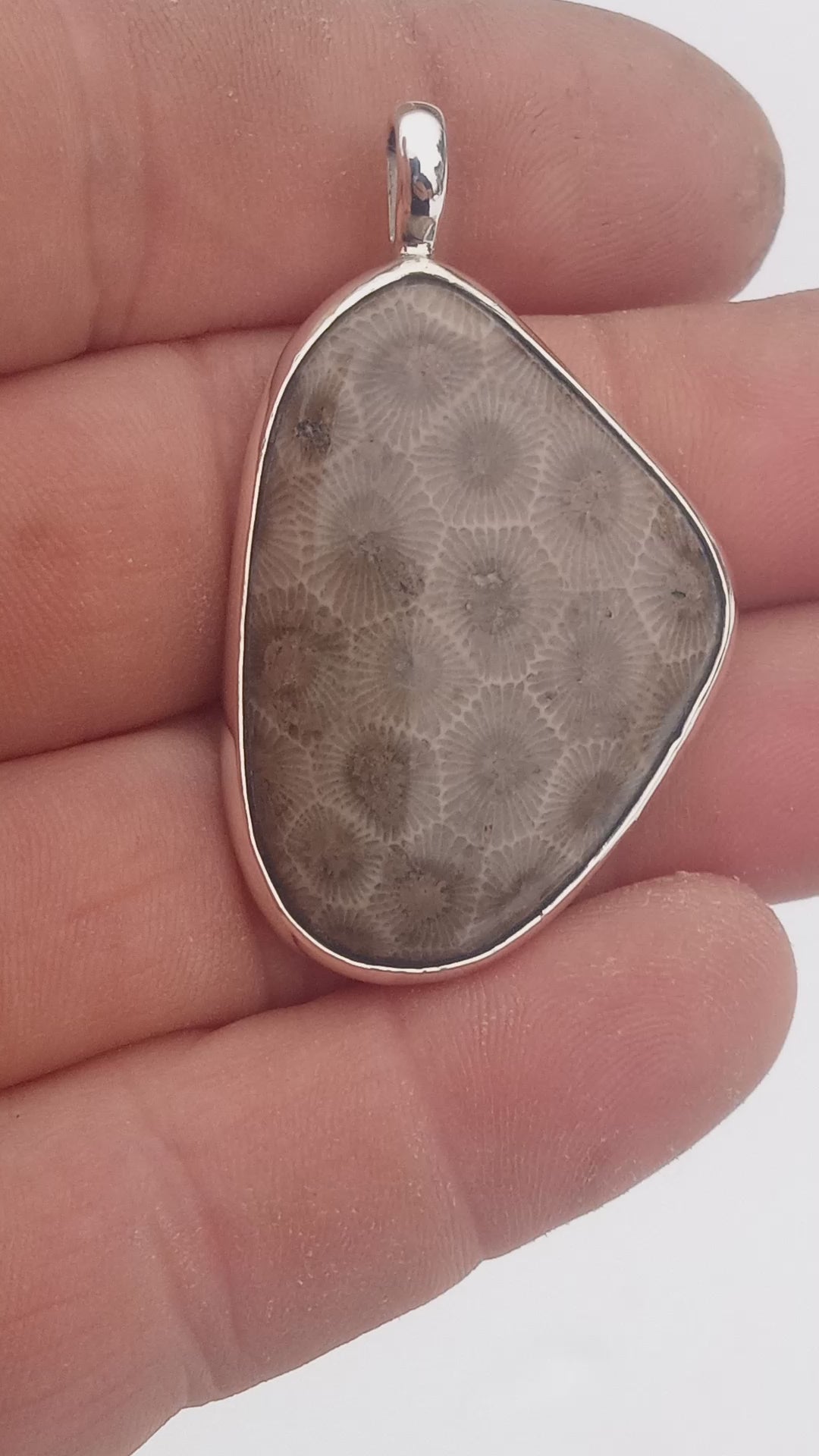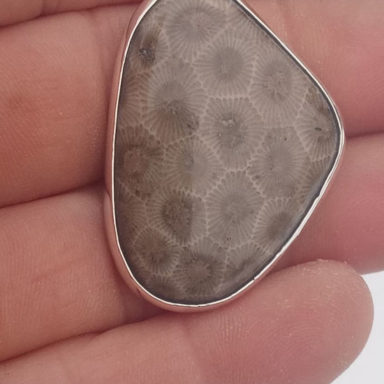 Petoskey stone fossil pendant fine silver