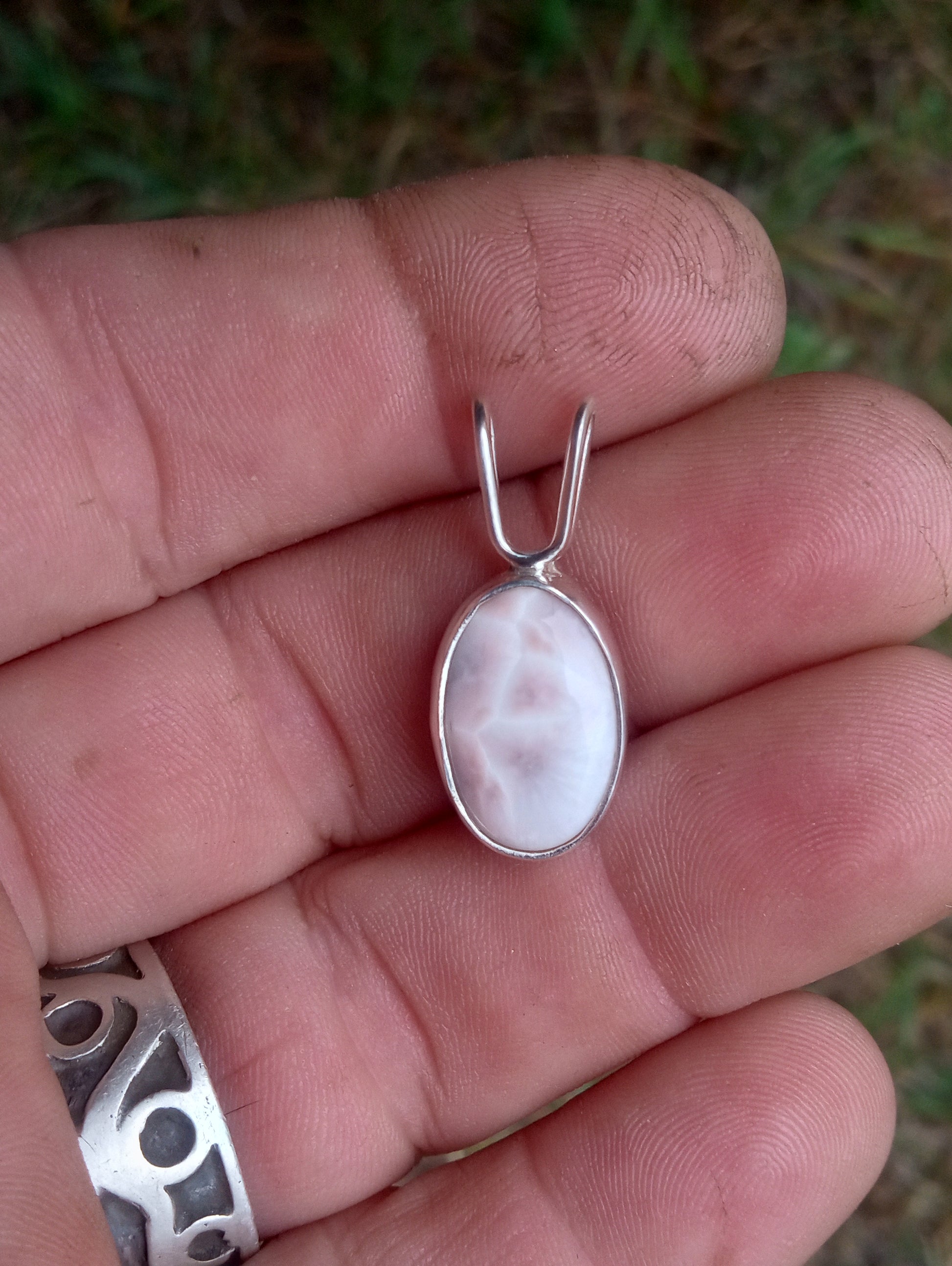 Beautiful pink larimar pendant set in pure fine .999 silver . Be a creator.