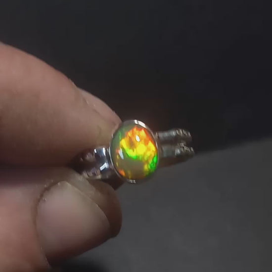 This ring has an absolutely amazing opal . Big flash so bright it looks magical and glowing. With a gem size of 1ctw it is absolutely gorgeous. The ring is a size 8 . As always sustainably handcrafted from pure .999 fine silver . This ring is going to catch eyes for sure . Hope you enjoy. Be a creator.